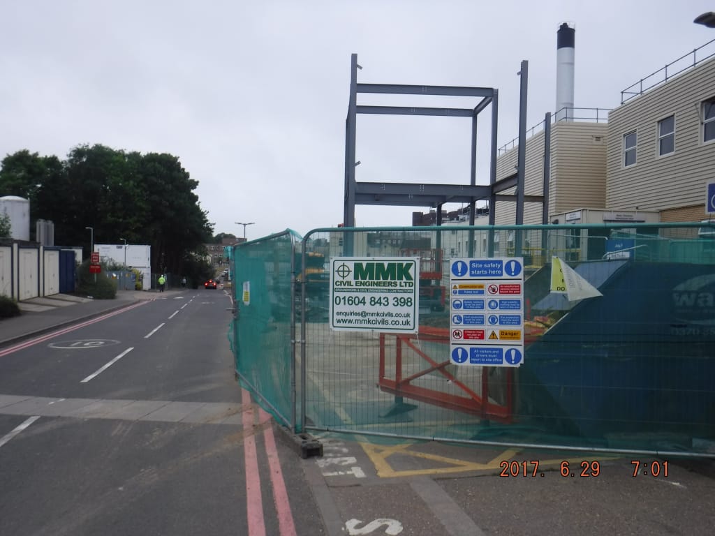 The works consist of the initial bulk excavation and laying of a Piling Mat to Structural Engineers design / layout and assistance with the Piling Contractor whilst the Piling is undertaken, with piles and cages being installed to a depth of circa 15 metres. MMK Civils will also crop all piles to required levels and install all foundations and a heavily re-inforced RC Ground Beam and Structural Slab with HD Bolt sets installed into the slab and isolated pile caps to carry the new build, all Setting Out of the HD Bolts etc and levels will be by MMK Civils Ltd direct Setting Out Engineer as this was also placed in MMK’s order. We will also be constructing new retaining walls so that the existing structures can remain in place in close proximity to the new build.